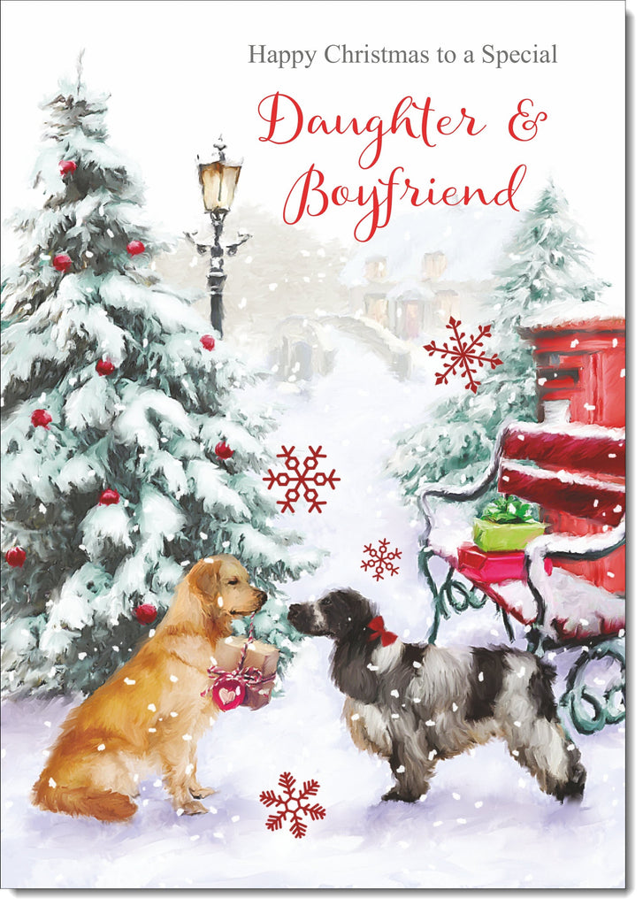 Daughter & Boyfriend Christmas Card Two Dogs in Snow