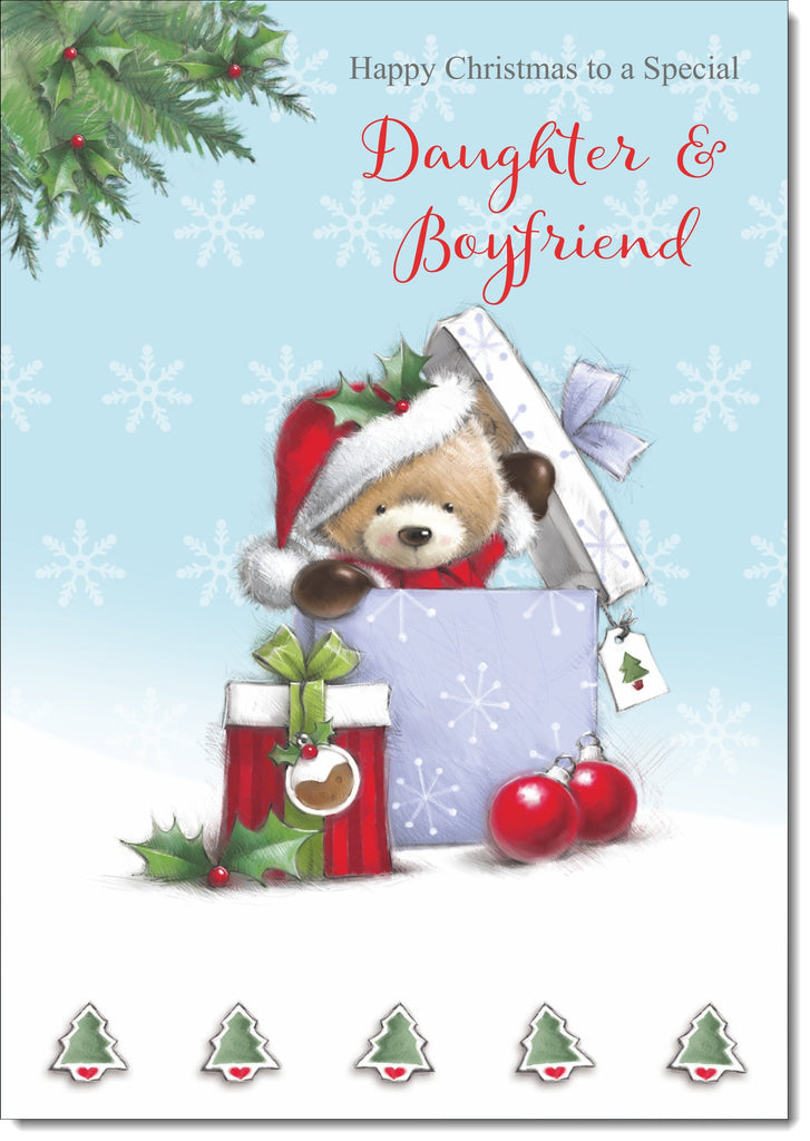 Daughter & Boyfriend Christmas Card Cute Bear in Christmas Parcel