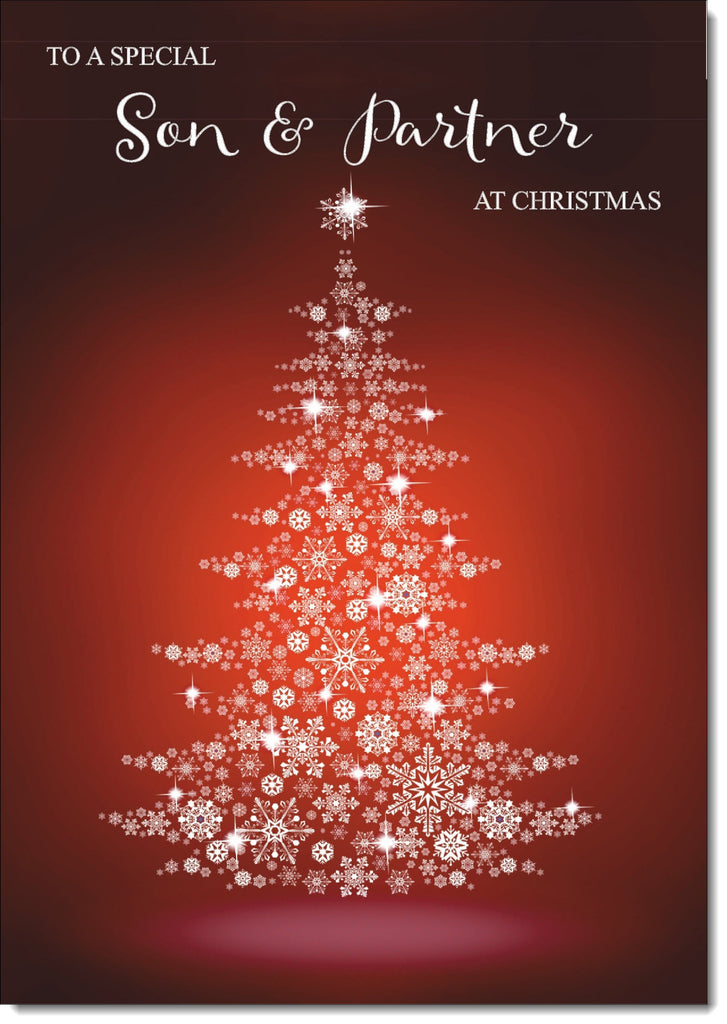 Son & Partner Christmas Card Red Snowflake Christmas Tree