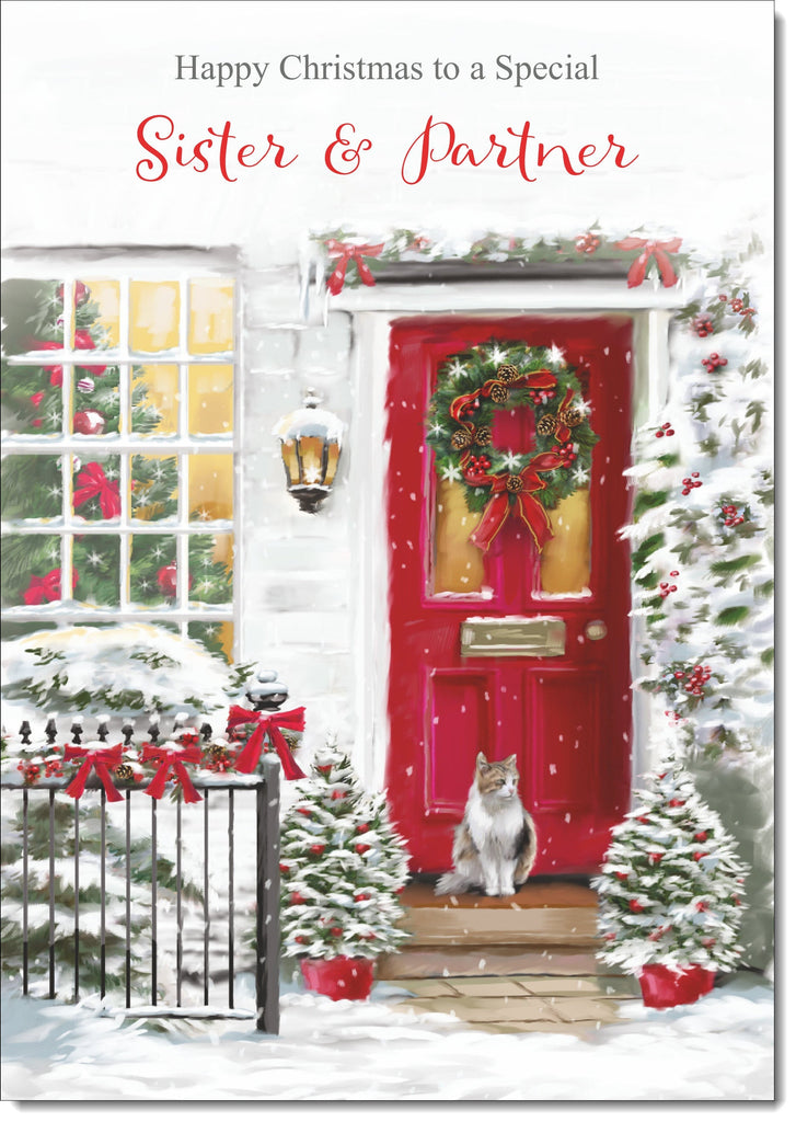 Sister & Partner Christmas Card Cat by Snowy Red Door