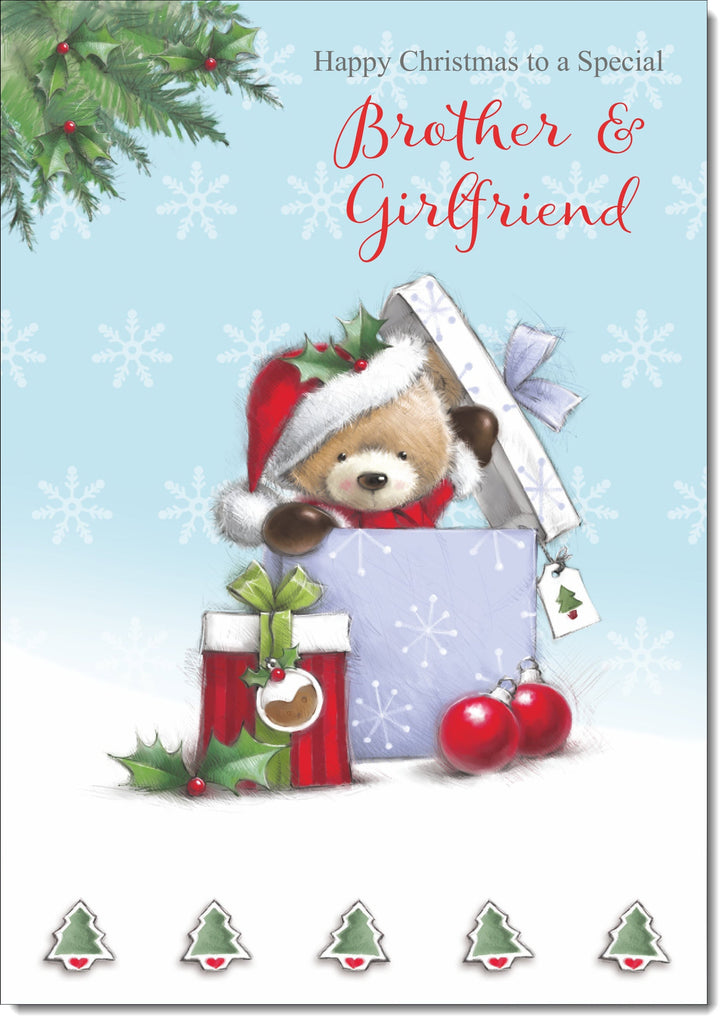 Brother & Girlfriend Christmas Card Cute Bear in Christmas Parcel