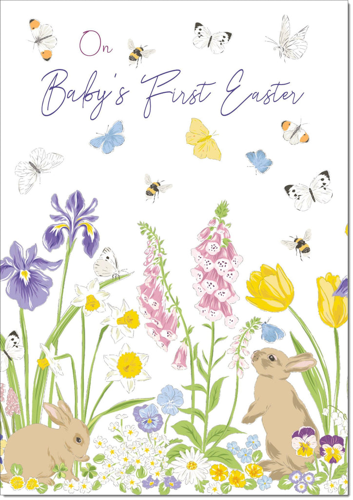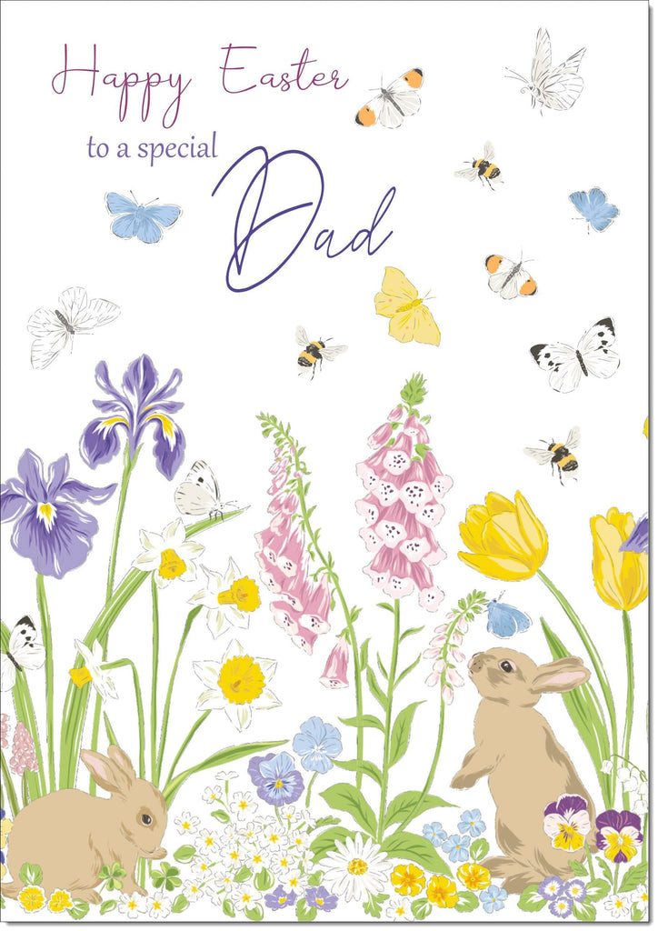 Mummy & Daddy Easter Card Spring Flowers with Bunnies