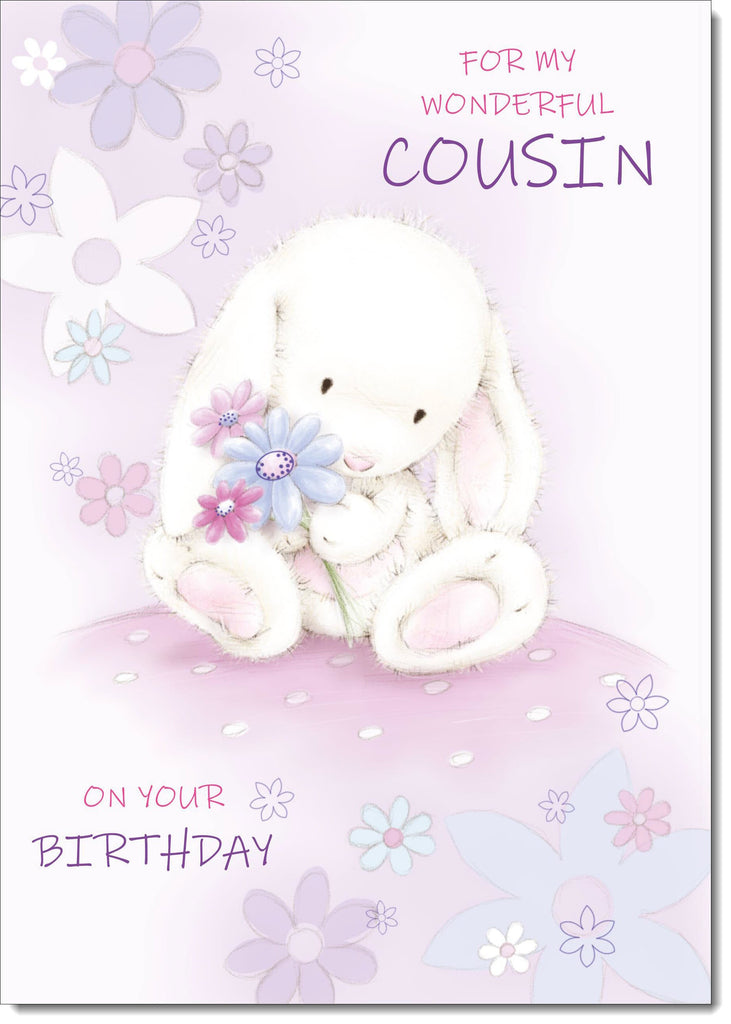 Cousin Birthday Card for Her Cute Rabbit with Flowers