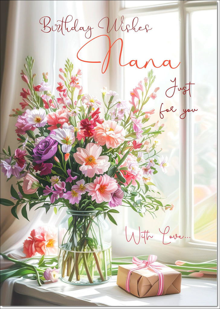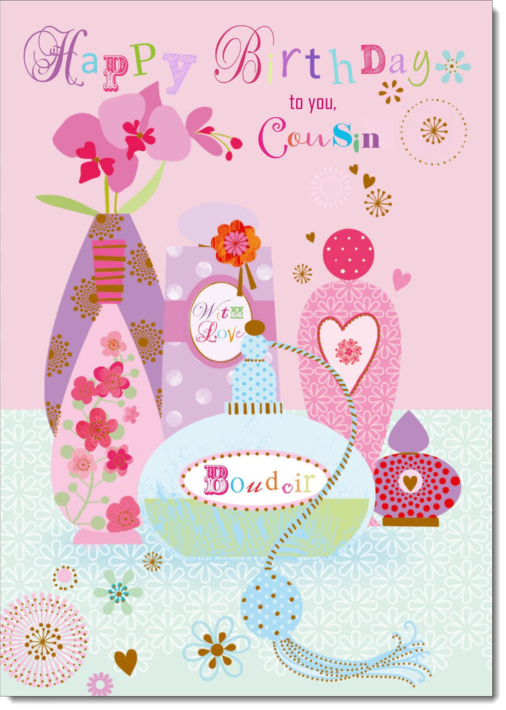 Cousin Birthday Card for Her Blue Vase and Blossom