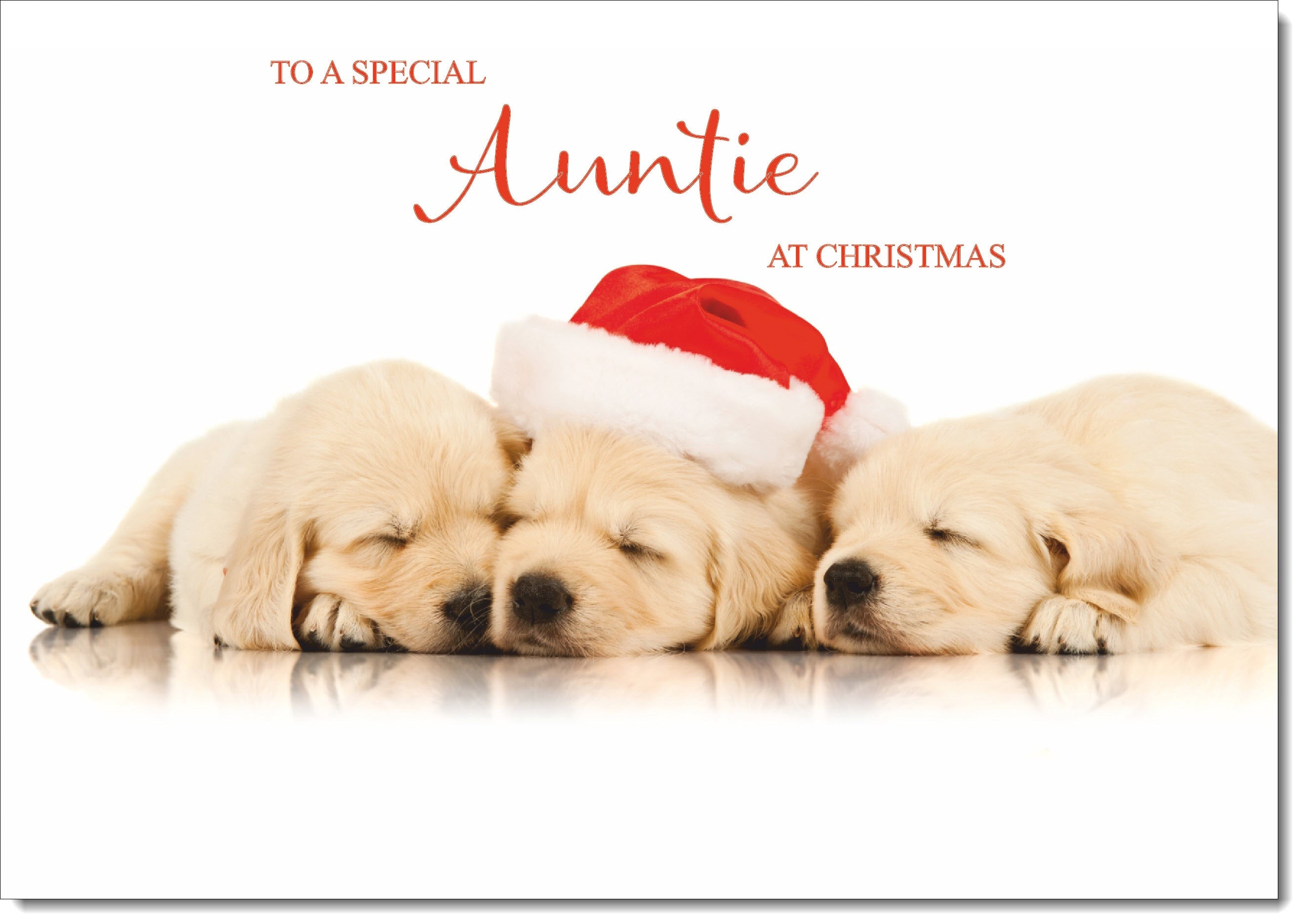 Auntie Christmas Card Christmas Golden Retriever Puppies