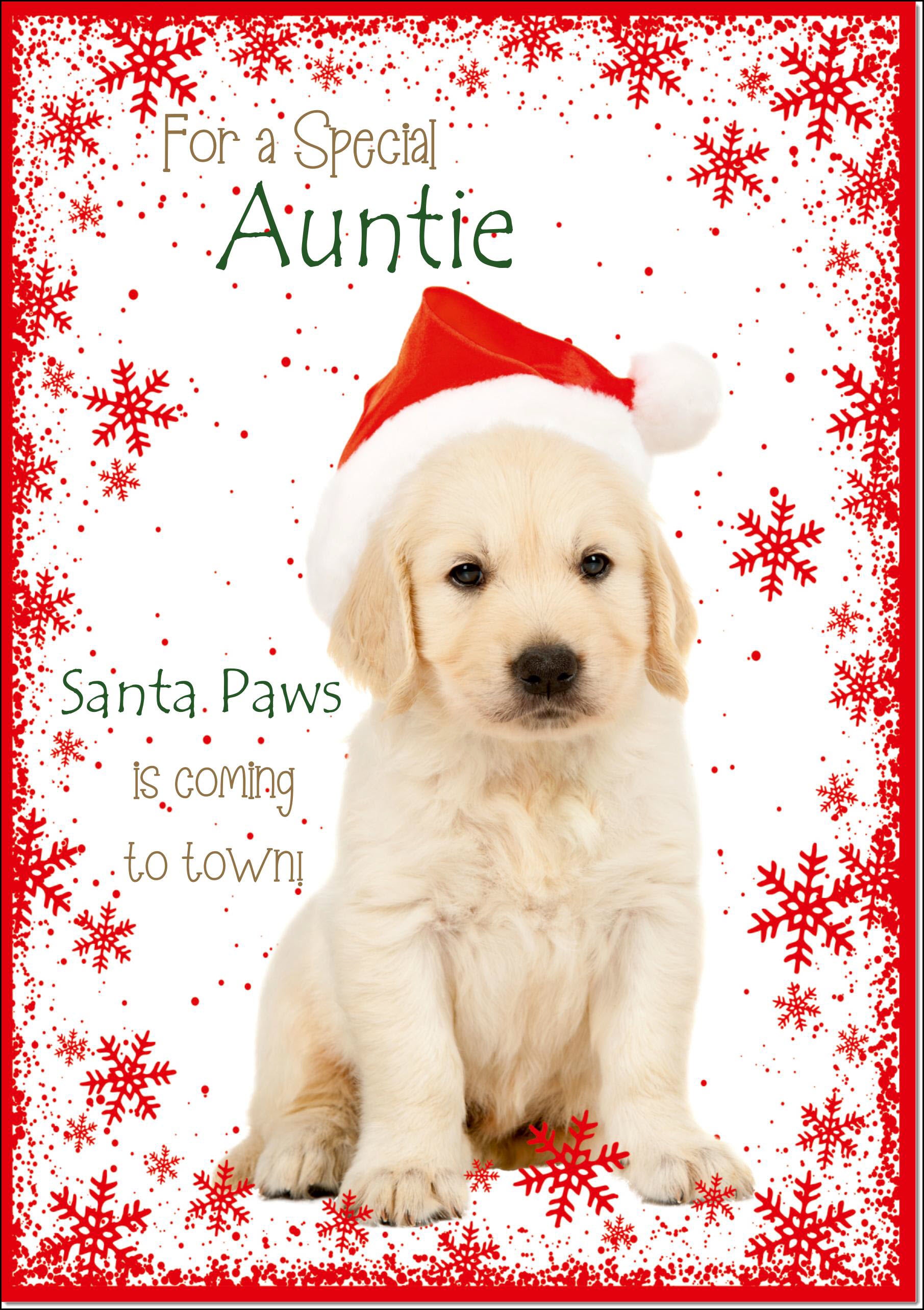 Auntie Christmas Card Cute Santa Paws Puppy Dog Pet