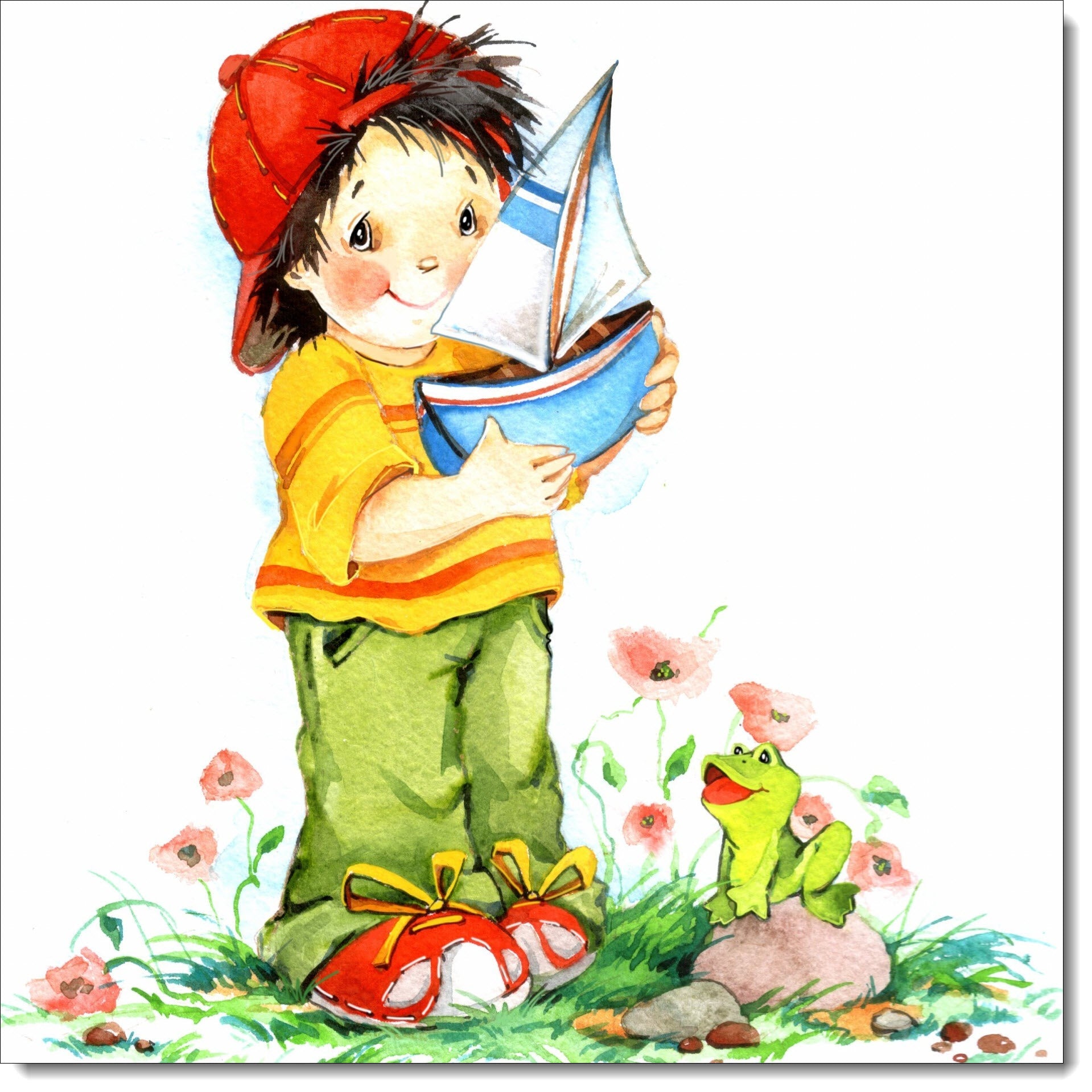 Happy Birthday Card Boy Playing with Sailing Boats