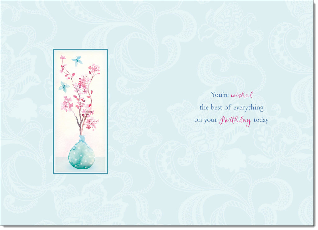 Friend Birthday Card for Her Blue Vase and Blossom