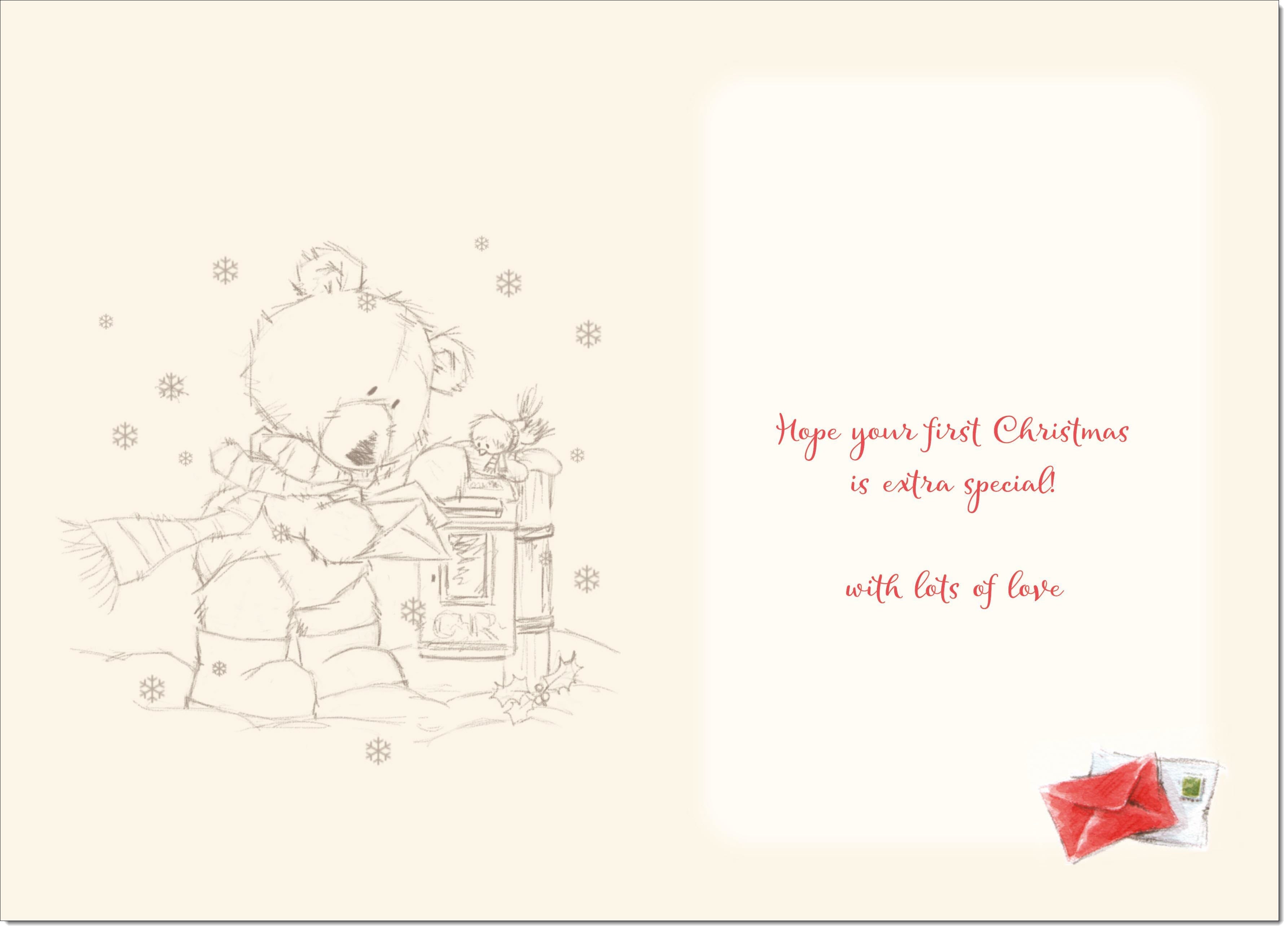 Grandsons 1st Christmas Card Cute Bear at Post Box