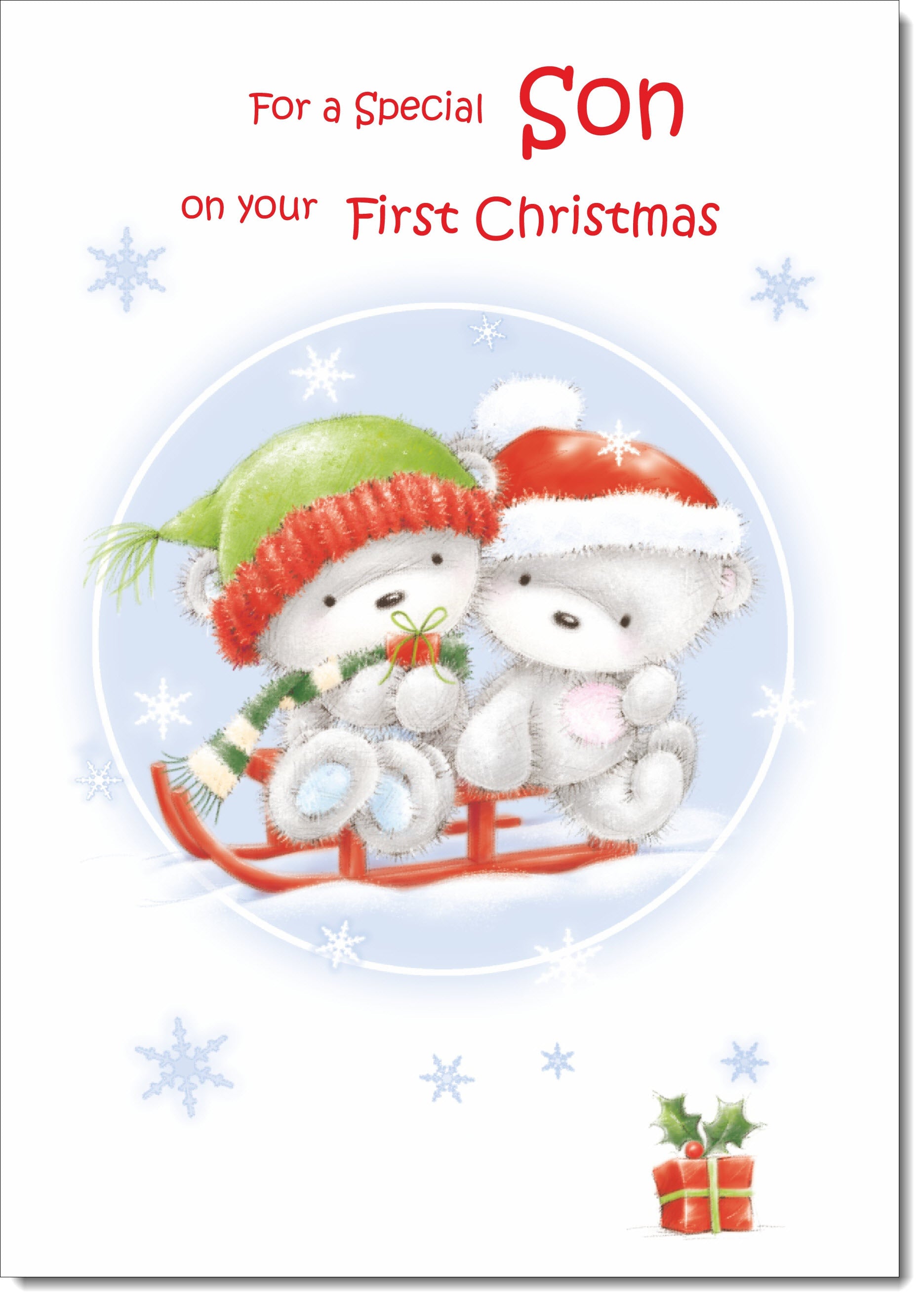 Sons 1st Christmas Card Cute Bears on Sled