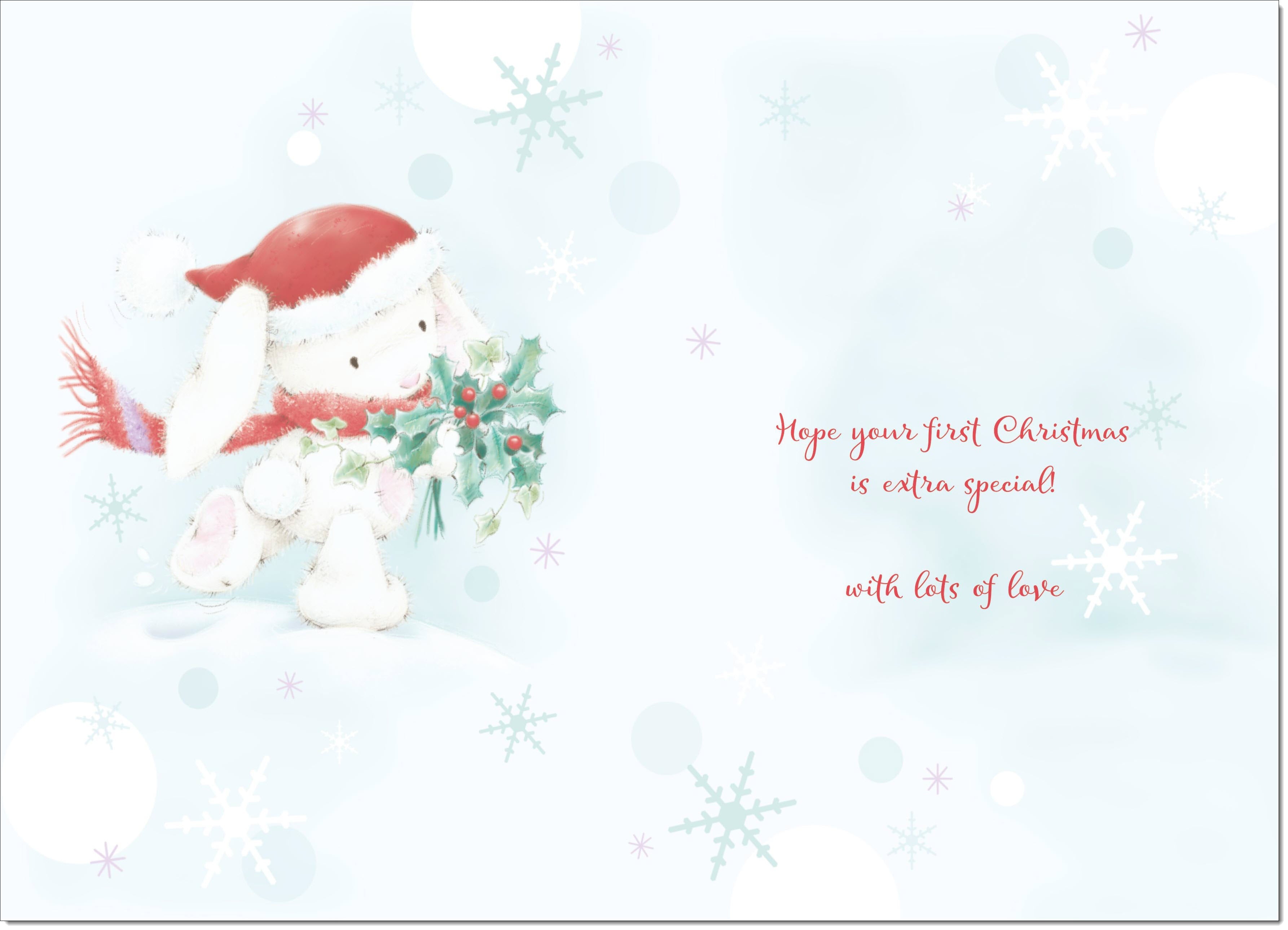 Grandsons 1st Christmas Card Cute Rabbit with Holly
