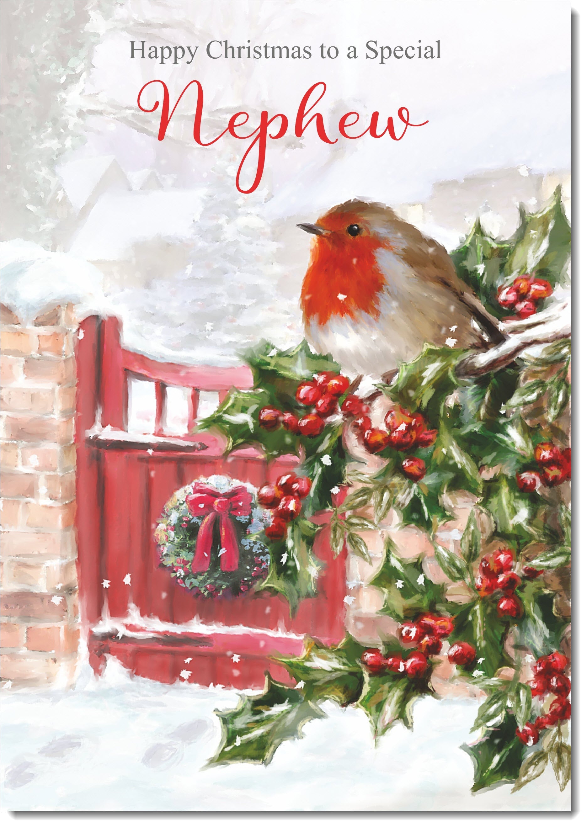 Nephew Christmas Card Robin on Holly Tree