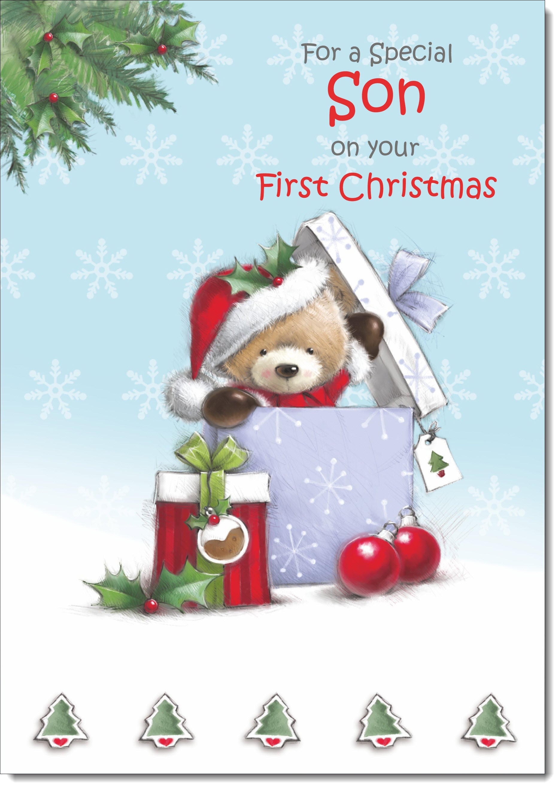 Sons 1st Christmas Card Cute Bear in Christmas Parcel