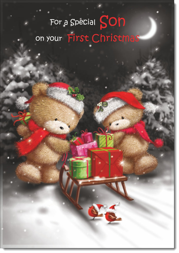 Son-in-Law Christmas Card Two Cute Bears on Sled