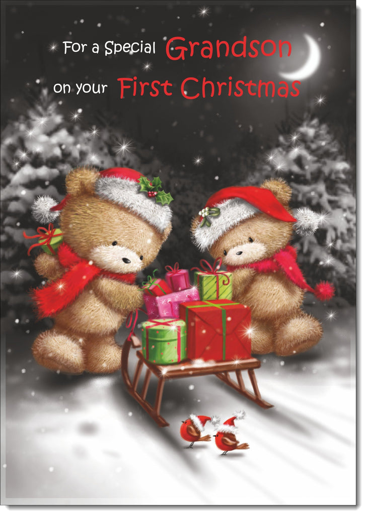 Grandsons 1st Christmas Card Cute Bears at Night