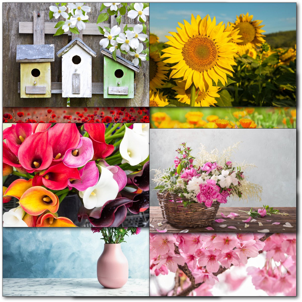 Pack of 60 Mixed C50 Small Floral Photographic Female Blank Cards - Flowers, Birdboxes, Waterlily, Sunflowers