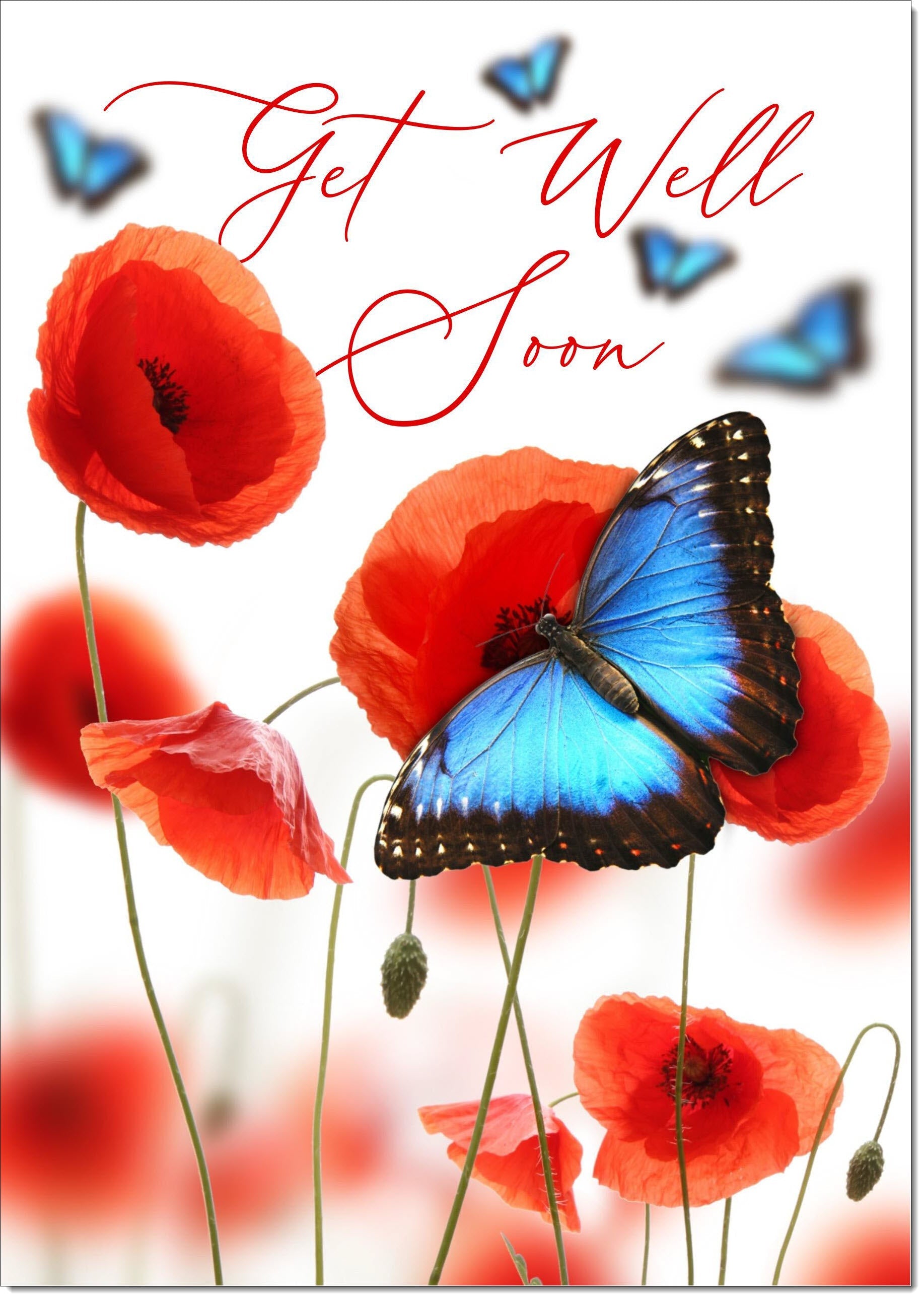 Get Well Card Poppies and Blue Butterflies
