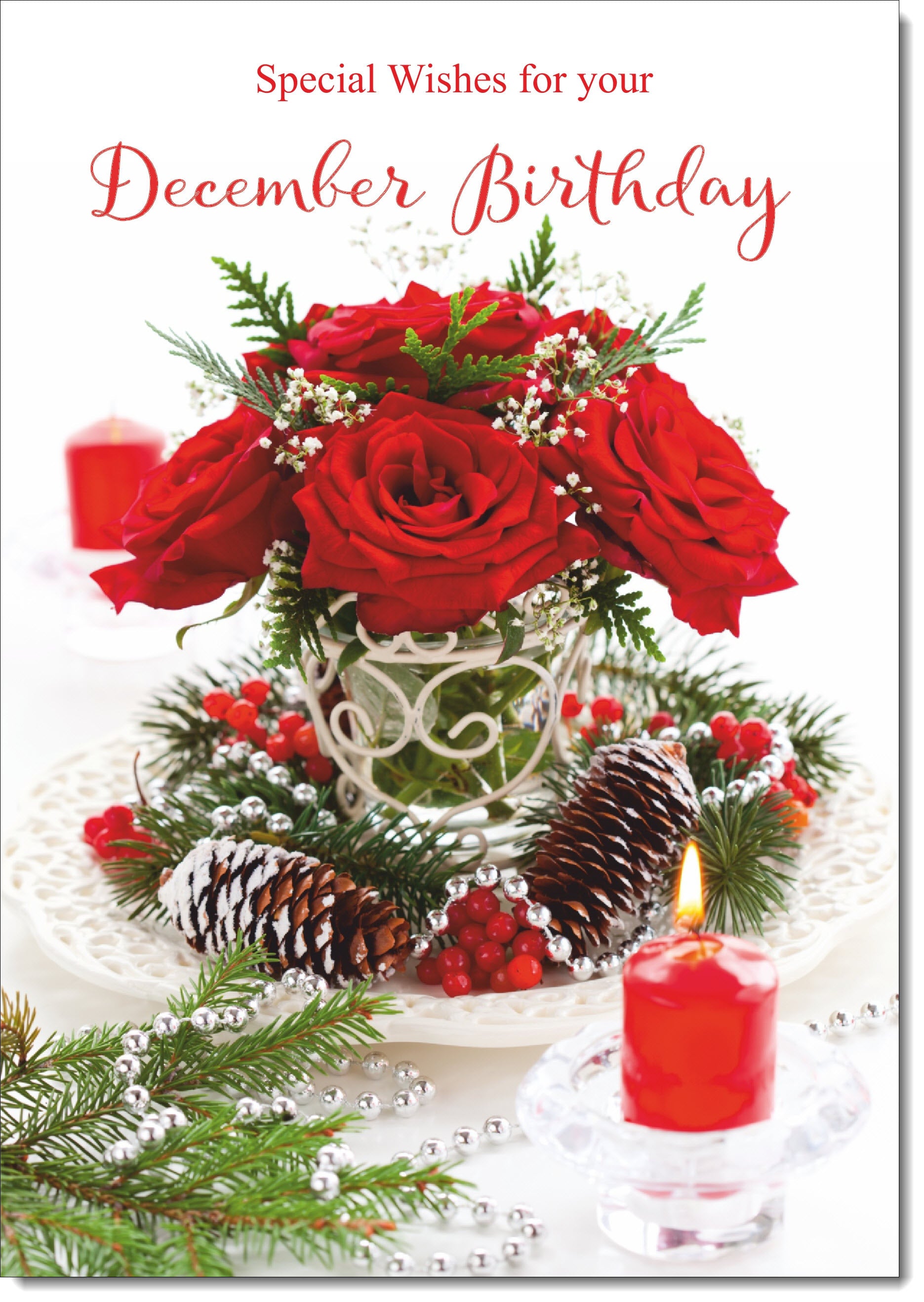 December Birthday Christmas Card Red Roses Christmas Arrangement