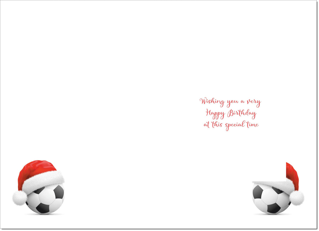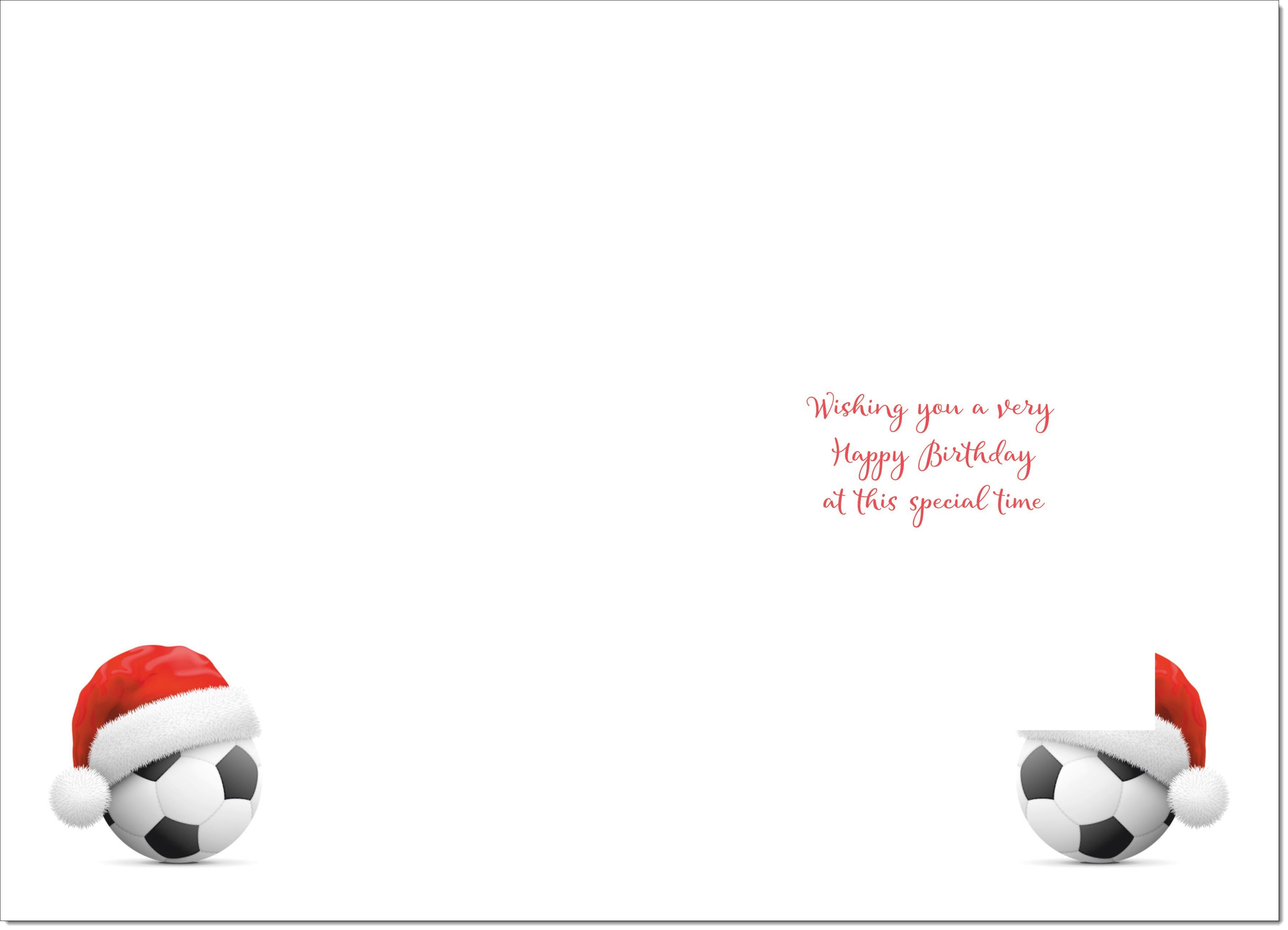 December Birthday Christmas Card Santa Hat Football with Red Sky