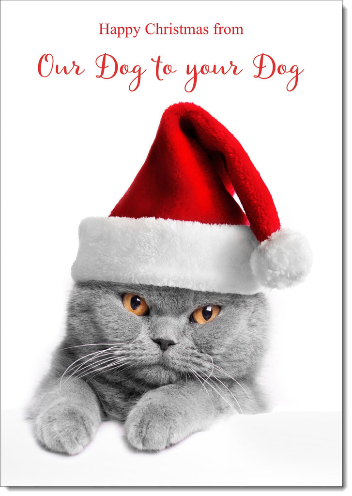Our Dog To Your Dog Christmas Card Grey Cat with Santa Hat