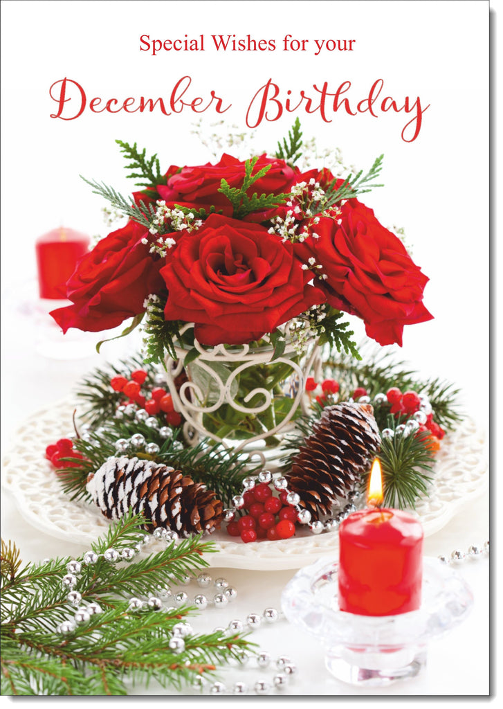 December Birthday Christmas Card Red Roses Christmas Arrangement