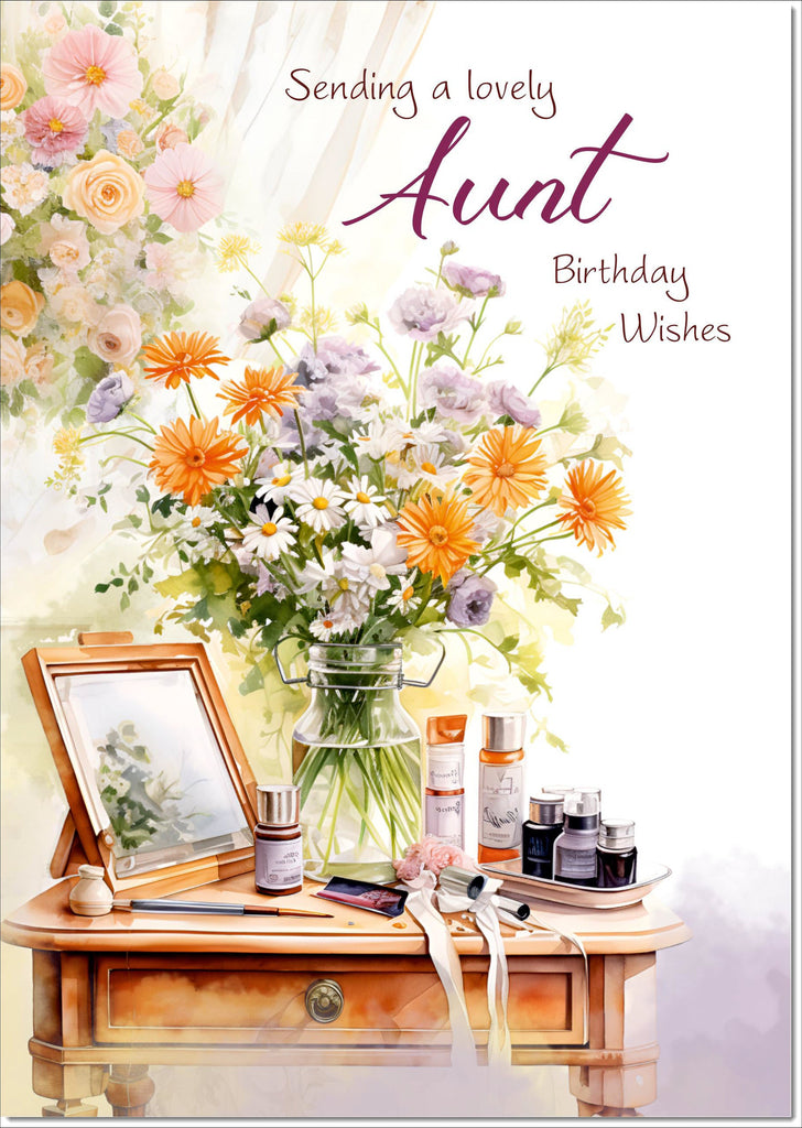 Auntie 50th Birthday Card Age 50 Flower Bouquet and Present