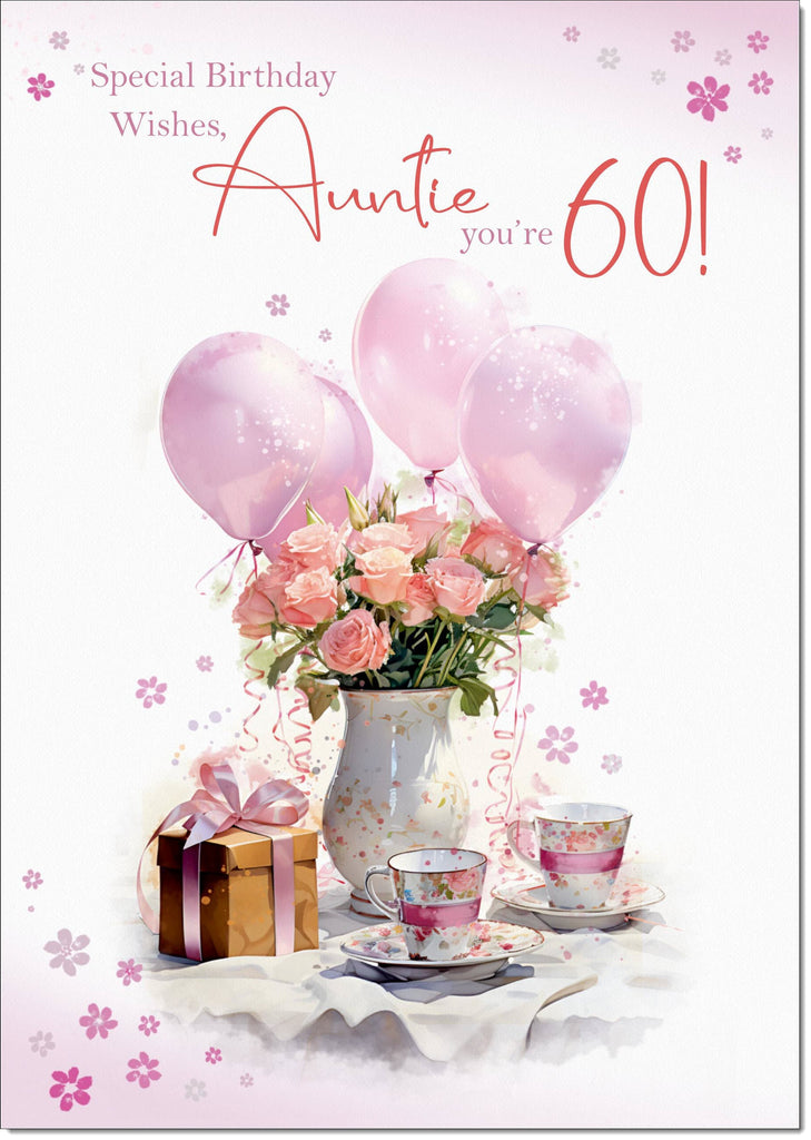 Auntie 60th Birthday Card Age 60 Tea Party and Balloons