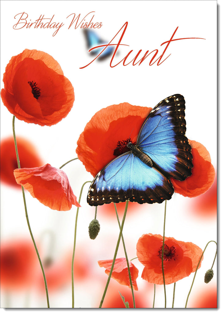 Auntie 30th Birthday Card Age 30 Poppies and Blue Butterflies