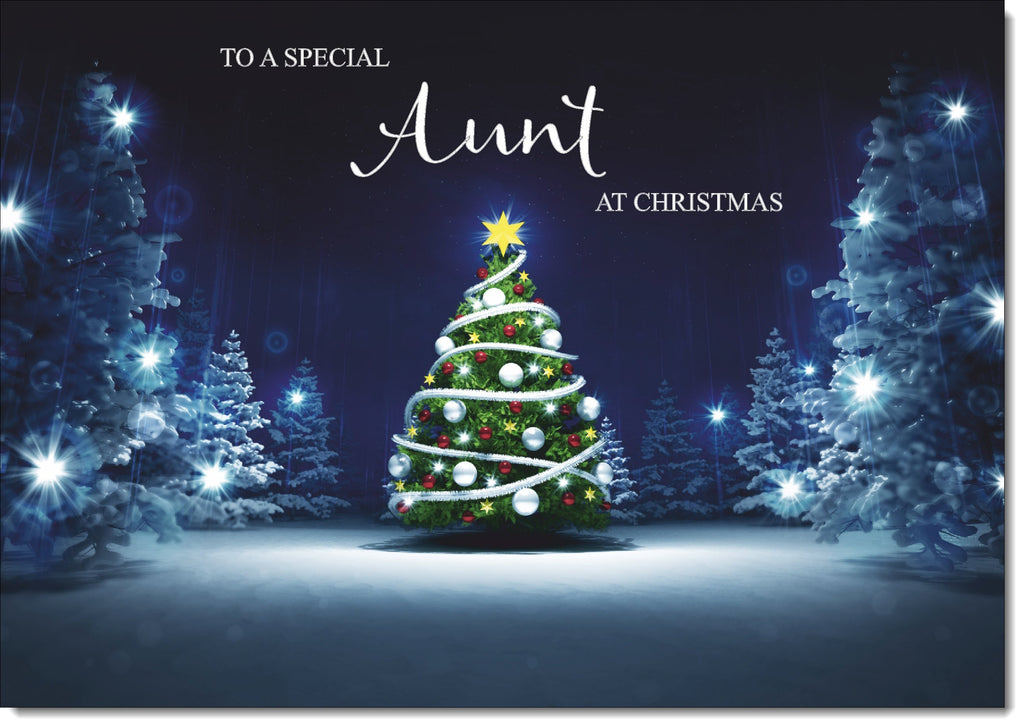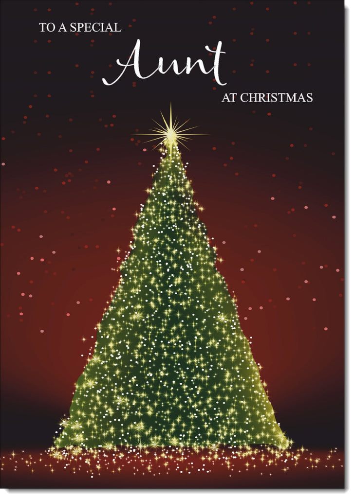 Aunt Christmas Card Christmas Tree Lights in Dark Sky