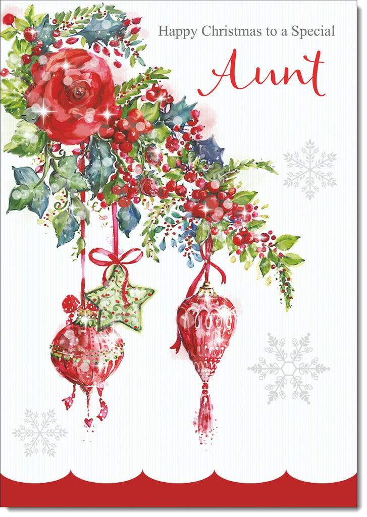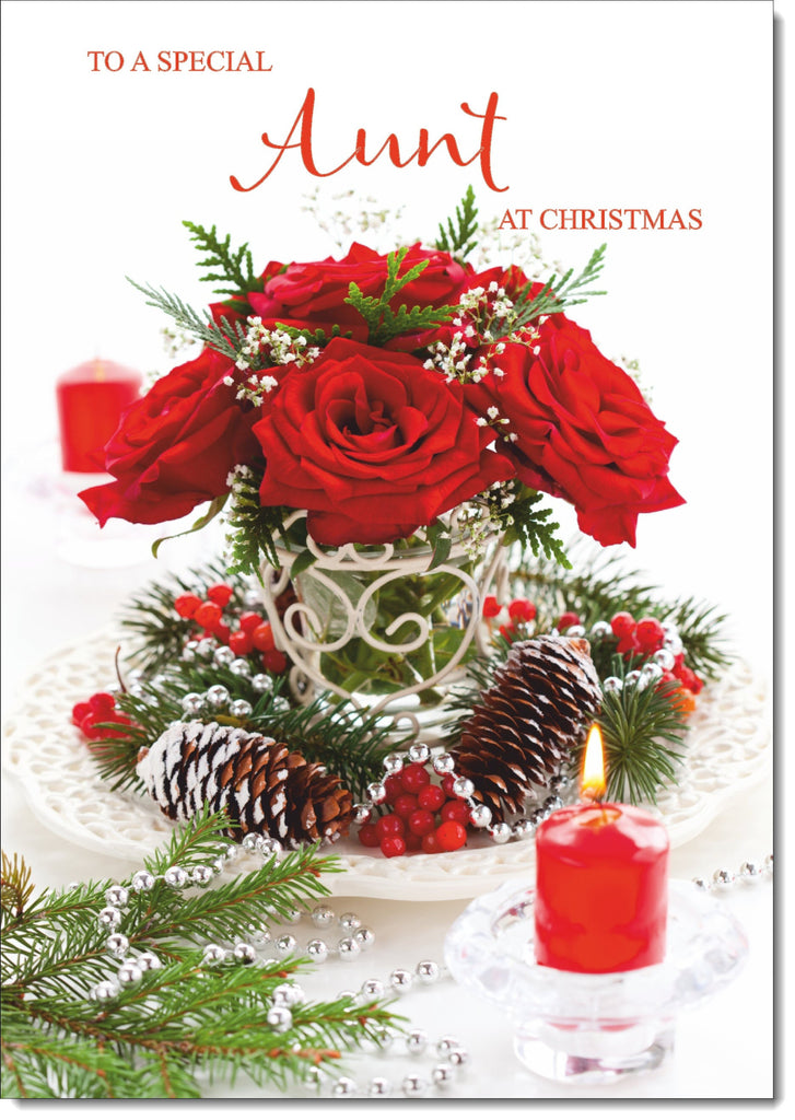 Aunt Christmas Card Red Roses Christmas Arrangement
