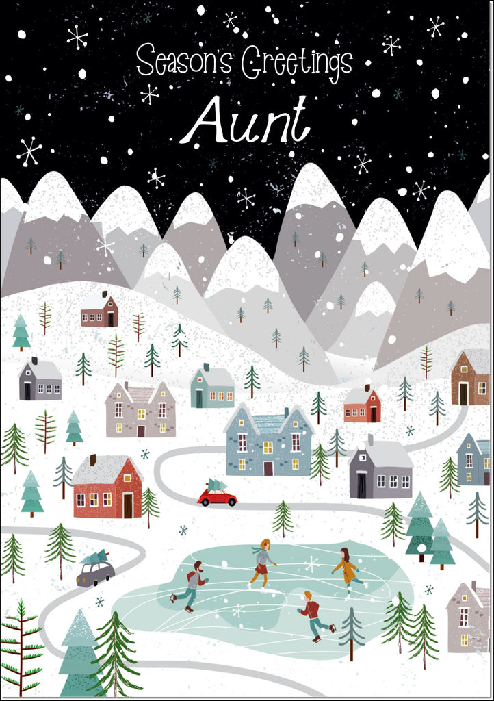 Aunt Christmas Card Mountain Scene In Snowy Village