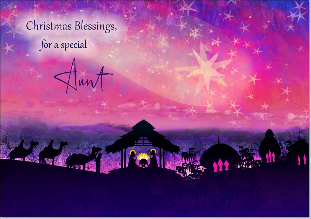 Aunt Christmas Card Nativity Scene Angels Bethlehem