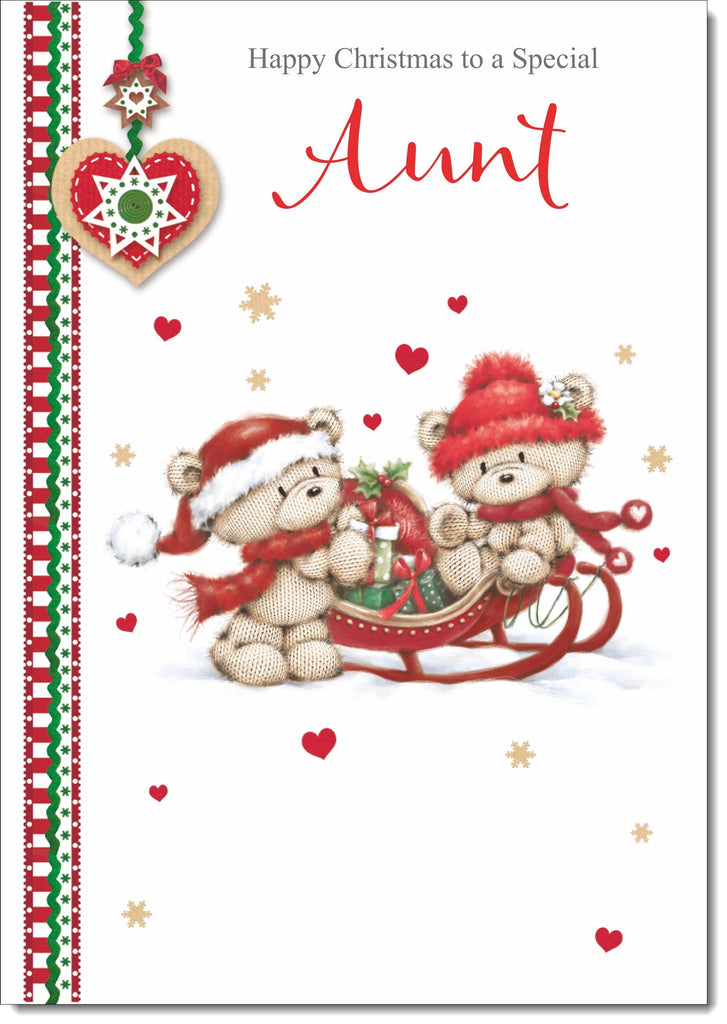 Aunt Christmas Card Teddy Bear in Santa Hat
