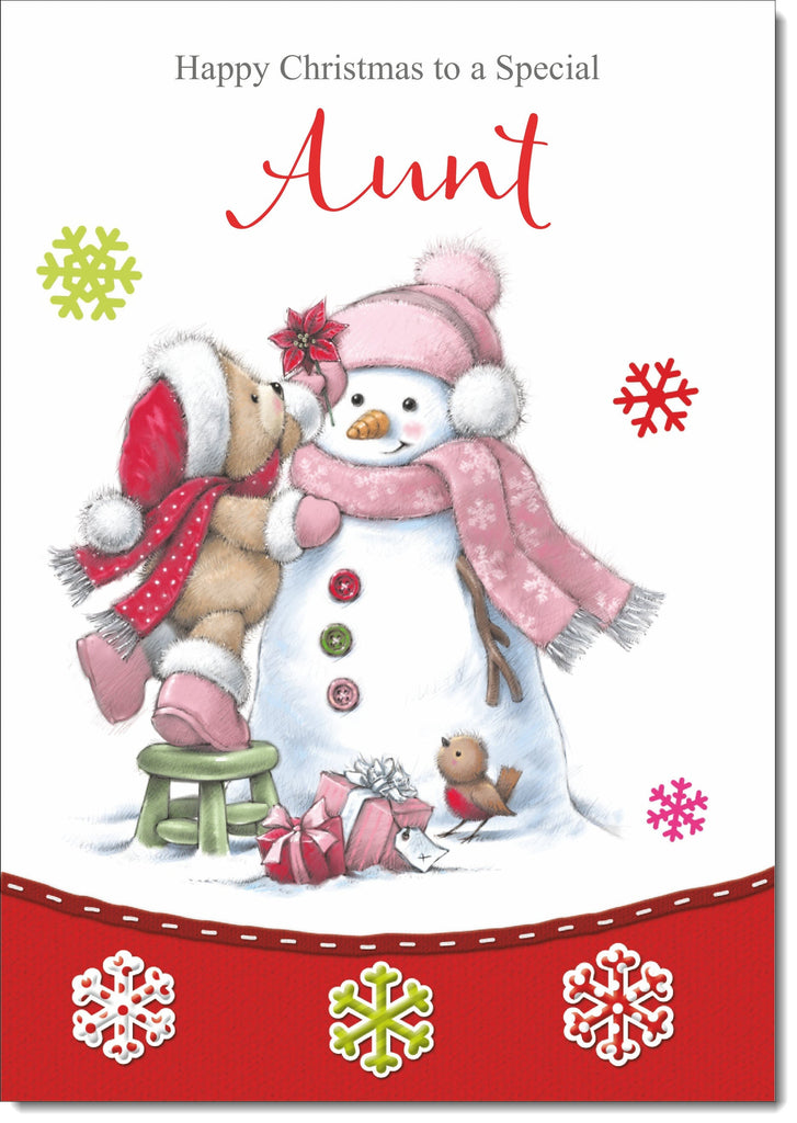 Aunt Christmas Card Cute Bear in Pink Bobble Hat