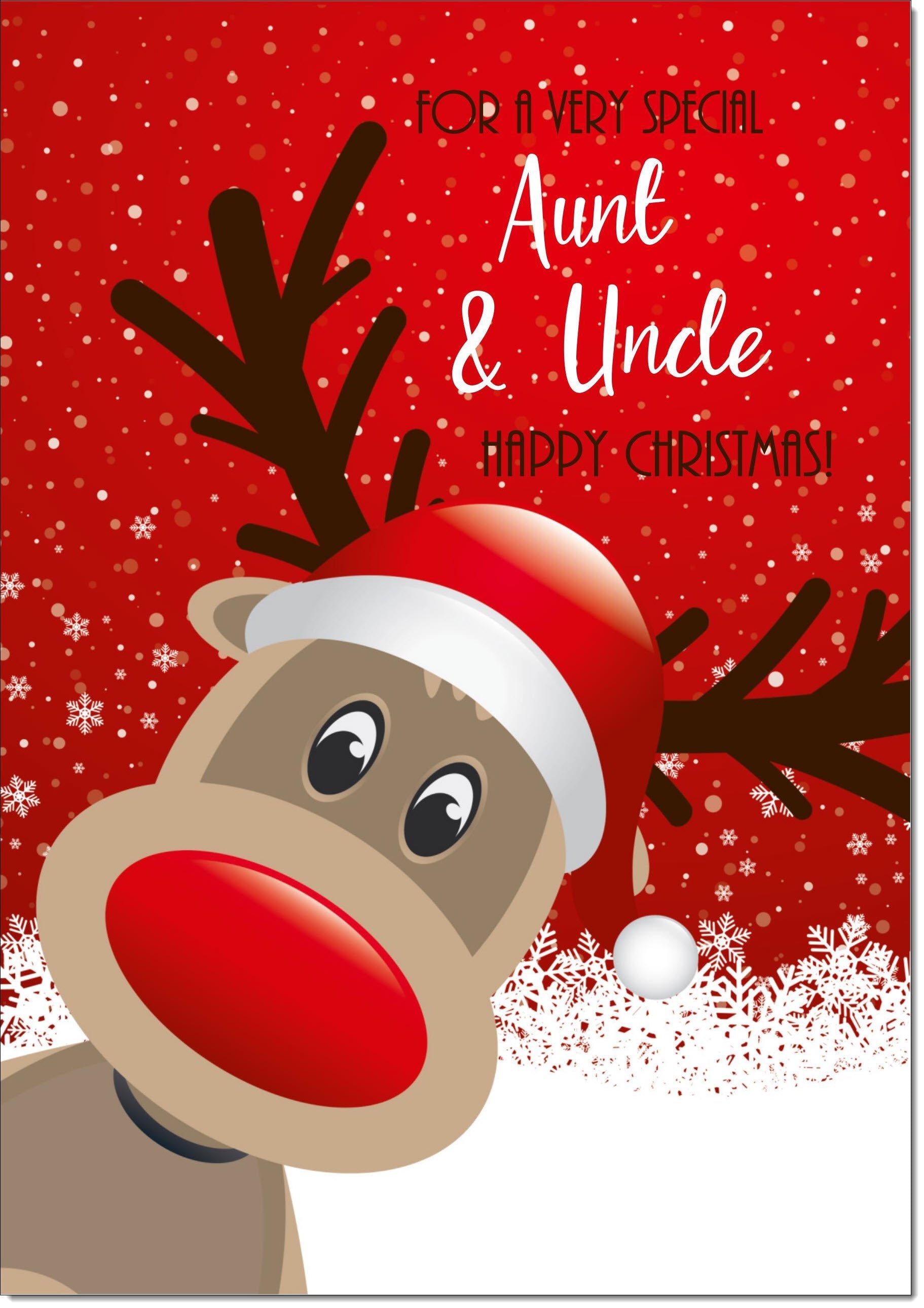 Aunt & Uncle Christmas Card Rudolph in Snow