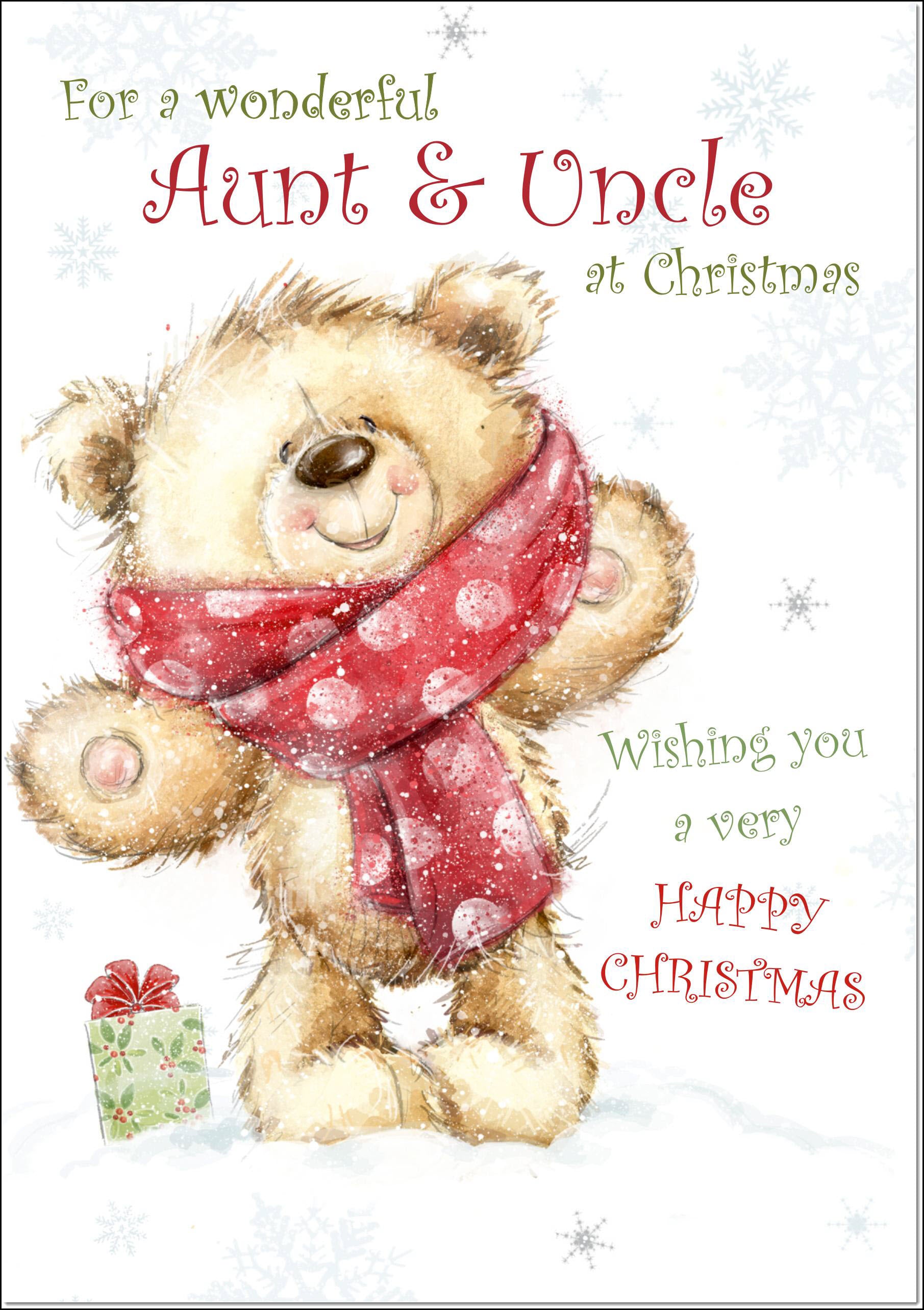 Aunt & Uncle Christmas Card Teddy Bear With Red Scarf