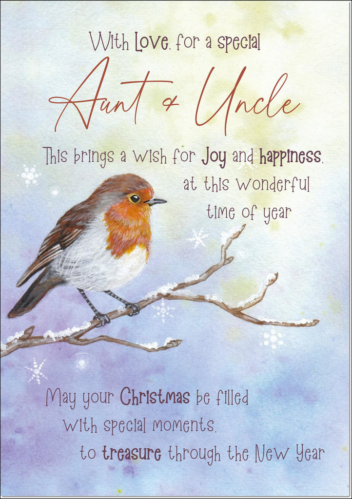 Aunt & Uncle Christmas Card Watercolour Robin In The Frost