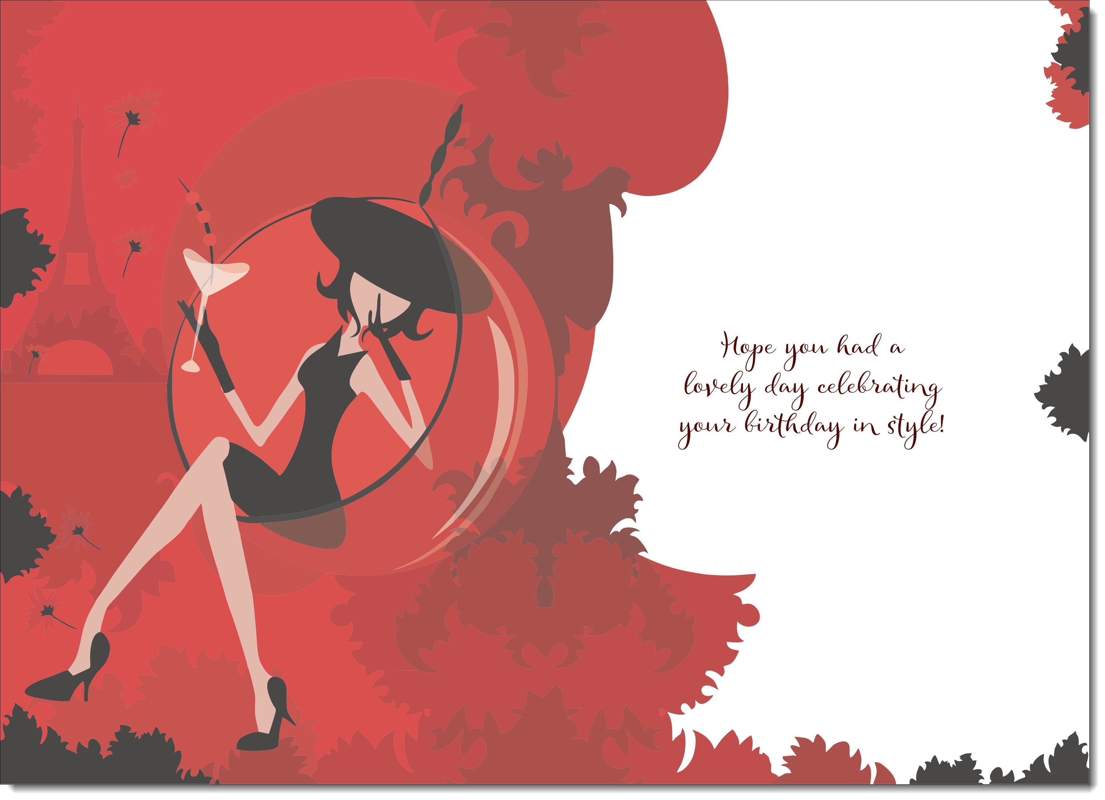 Belated Birthday Card Fashionable Lady in Paris