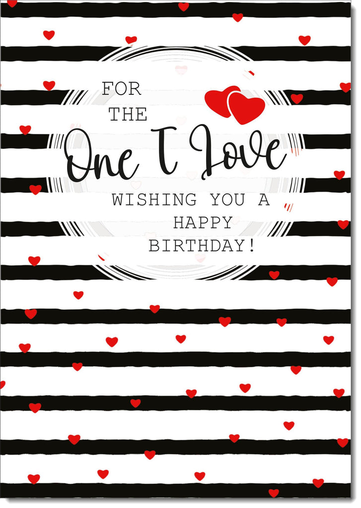 One I Love Birthday Card for Him Love Hearts and Stripes