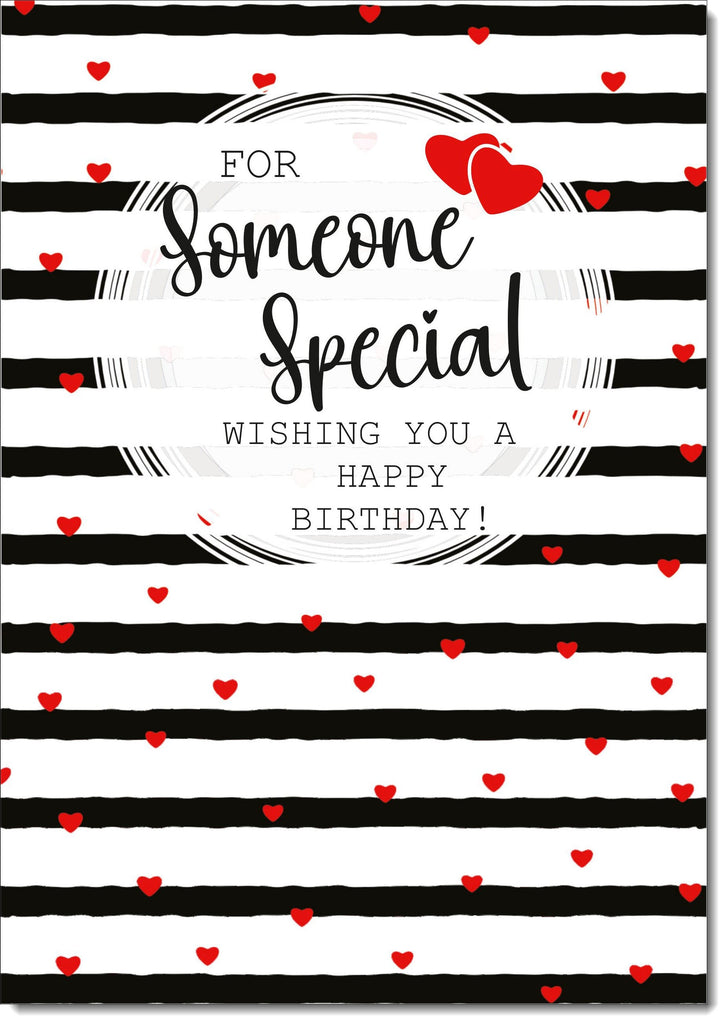 Someone Special Birthday Card for Him Love Hearts and Stripes