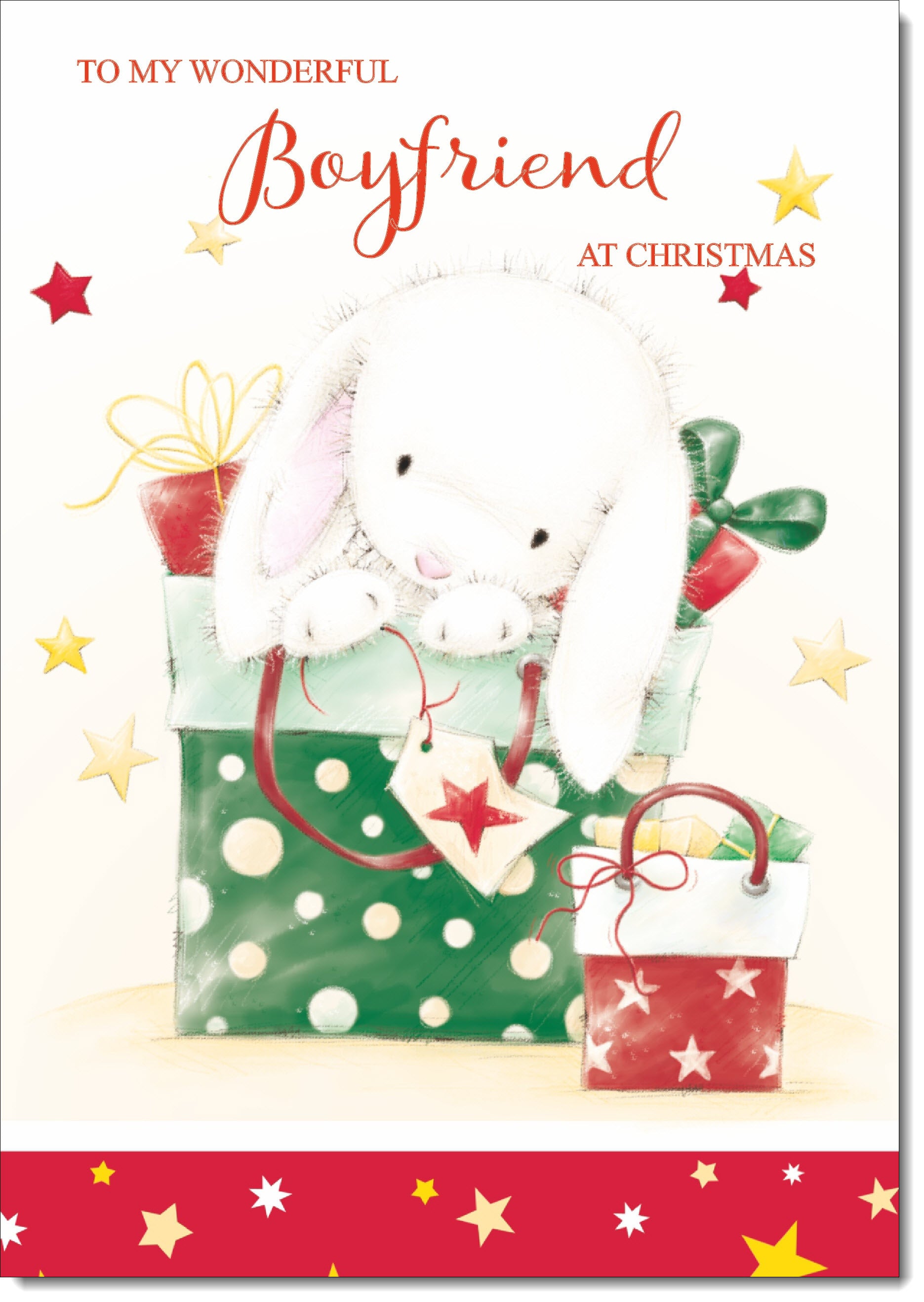 Boyfriend Christmas Card Cute Rabbit with Parcels
