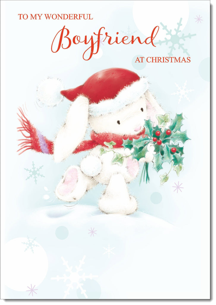 Boyfriend Christmas Card Cute Rabbit with Stocking