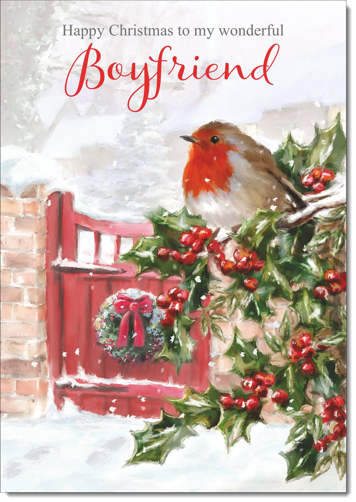Boyfriend Christmas Card Robin on Snow