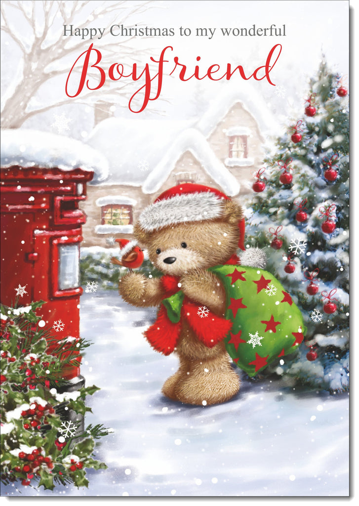 Boyfriend Christmas Card Cute Bear at Post Box