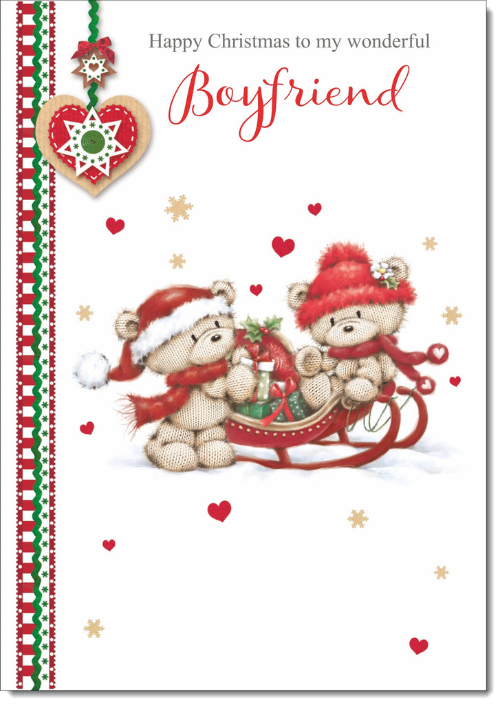Boyfriend Christmas Card Cute Bears on Sled
