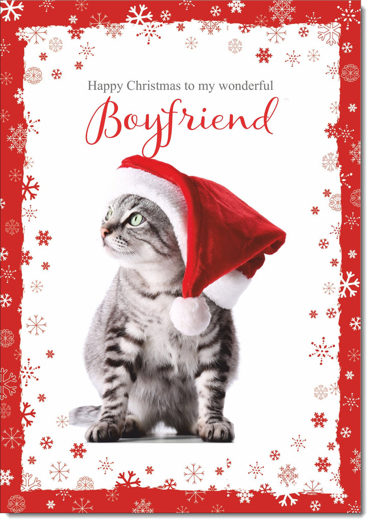Boyfriend Christmas Card Cat with Santa Hat