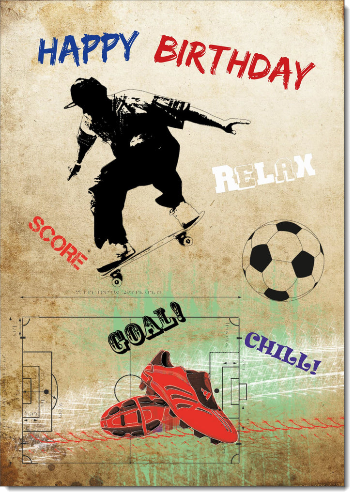 Happy Birthday Card Football and Skateboarding