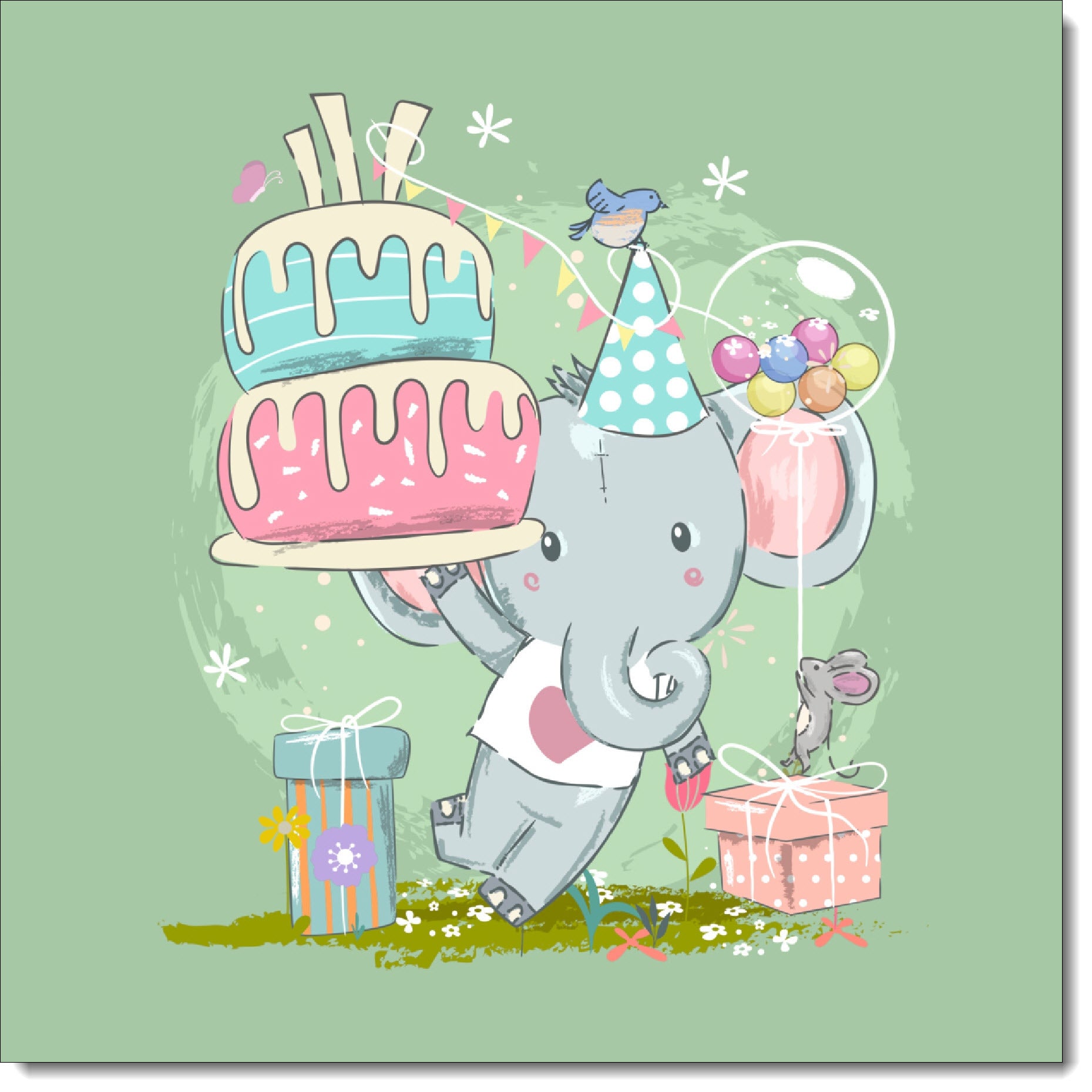 Birthday Card for Girl Cute Elephant and Cake