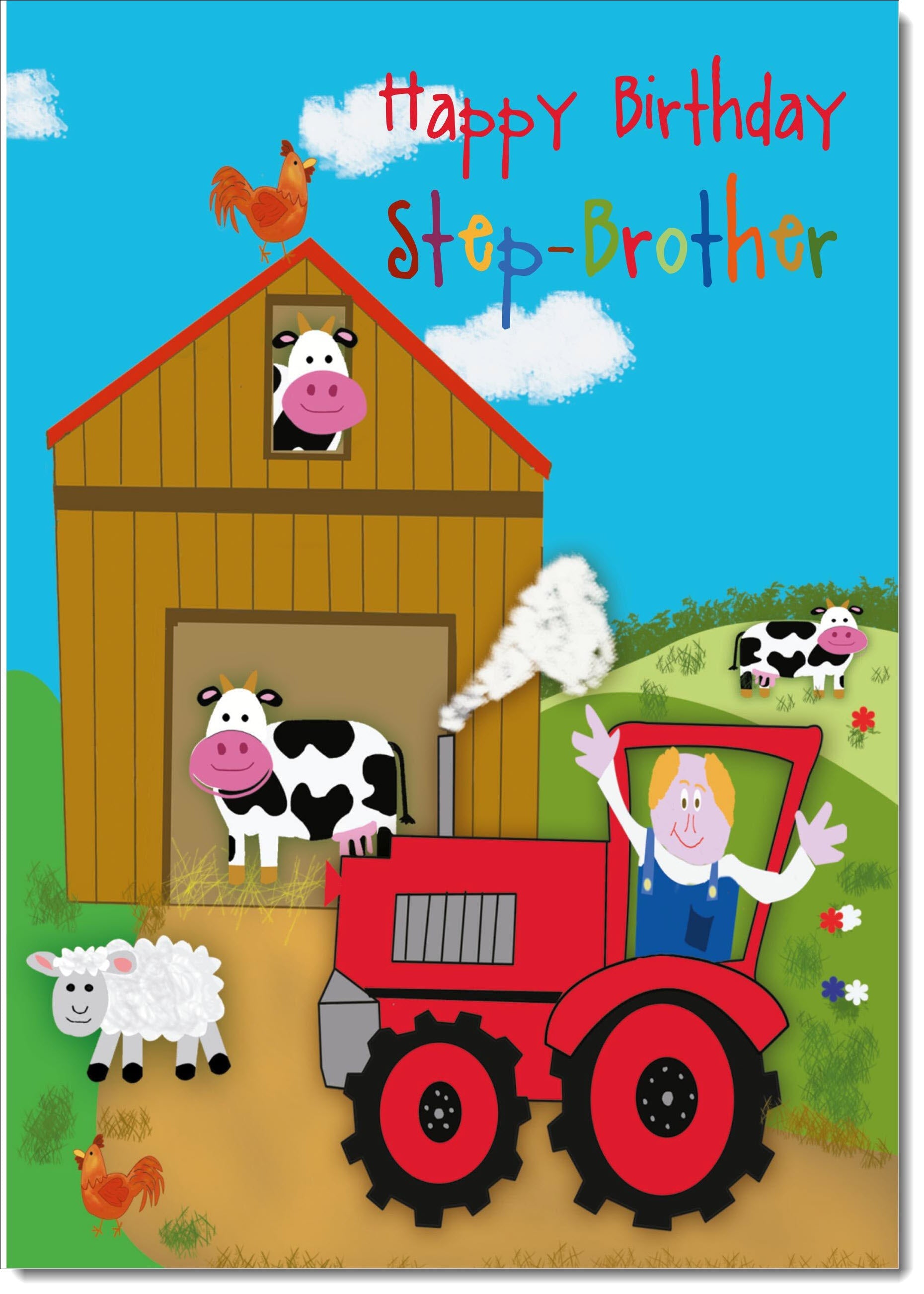 Stepbrother Birthday Card Farmyard