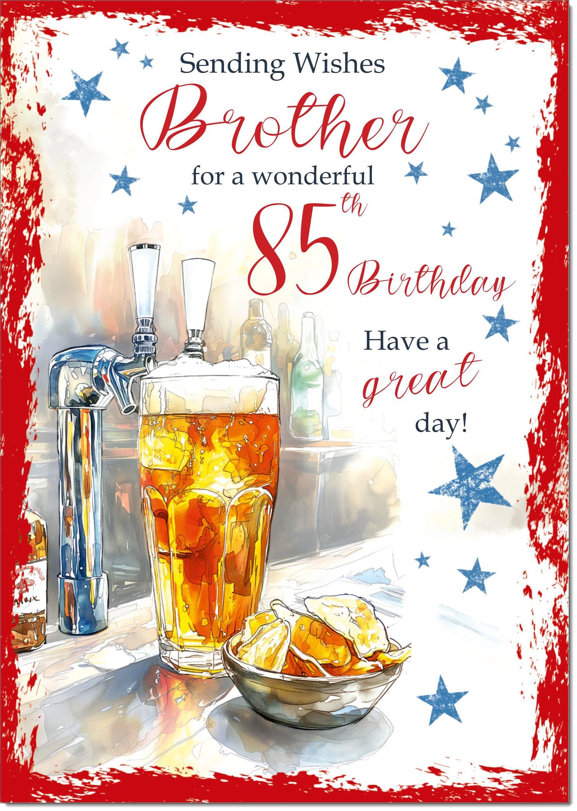 Brother 85th Birthday Card Age 85 Beer and Crisps